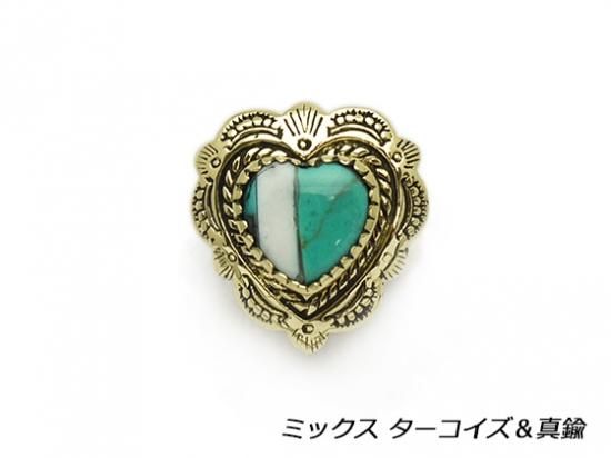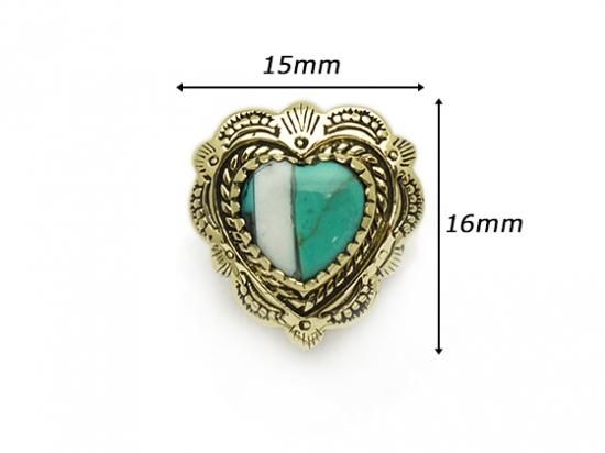 ハートシェイプコンチョ 15×16mm ミックスターコイズ(真鍮) ネジ式